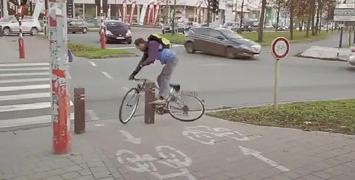 El vídeo, que no en vano lleva como título* Brussels Bike Jungle* (“La jungla ciclista de Bruselas”), muestra a sus protagonistas ‘luchando’ desesperadamente por pedalear sin sufrir un rasguño, pero la hazaña de vuelve imposible: caídas aparatosas, choques contra árboles y farolas y un sinfín de contratiempos a la hora de seguir las indicaciones ciclistas marcadas en la vía.