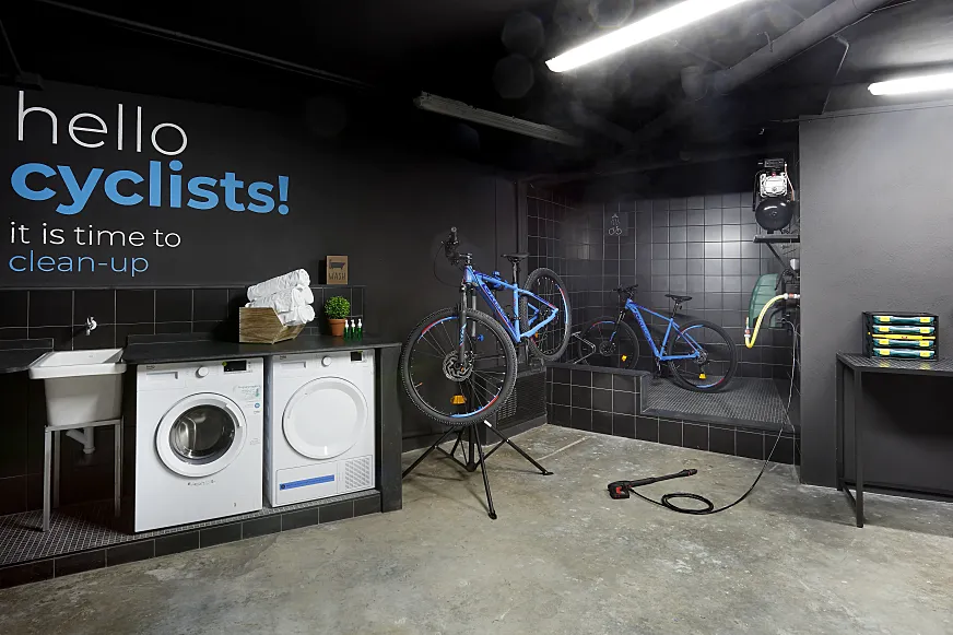 Se anuncia como “hotel para ciclistas en el Maresme” y no mienten: se adaptó en 2018 a ciclistas y triatletas (está próximo al Club Natació Mataró y la playa) y no le falta detalle. Espacio cerrado y seguro para guardar la bici, taller completo y zona de lavado con máquina de agua a presión. Además, menús equilibrados y un extenso catálogo de itinerarios con tracks GPX descargables.